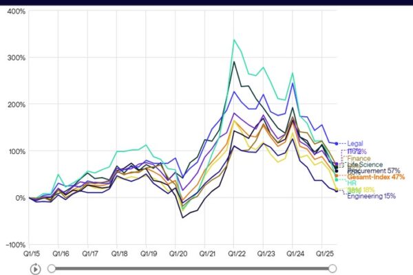 Mannheim (ots) – – Gesamtnachfrage im dritten Quartal weiterhin rückläufig – HR-Nachfrage bricht deutlich ein – Engineering, IT und Legal…