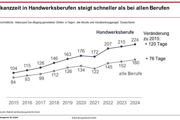 Nürnberg (ots) – Schon seit zehn Jahren dauert es immer länger, bis Betriebe im Handwerk offene Stellen besetzen können. Ein…